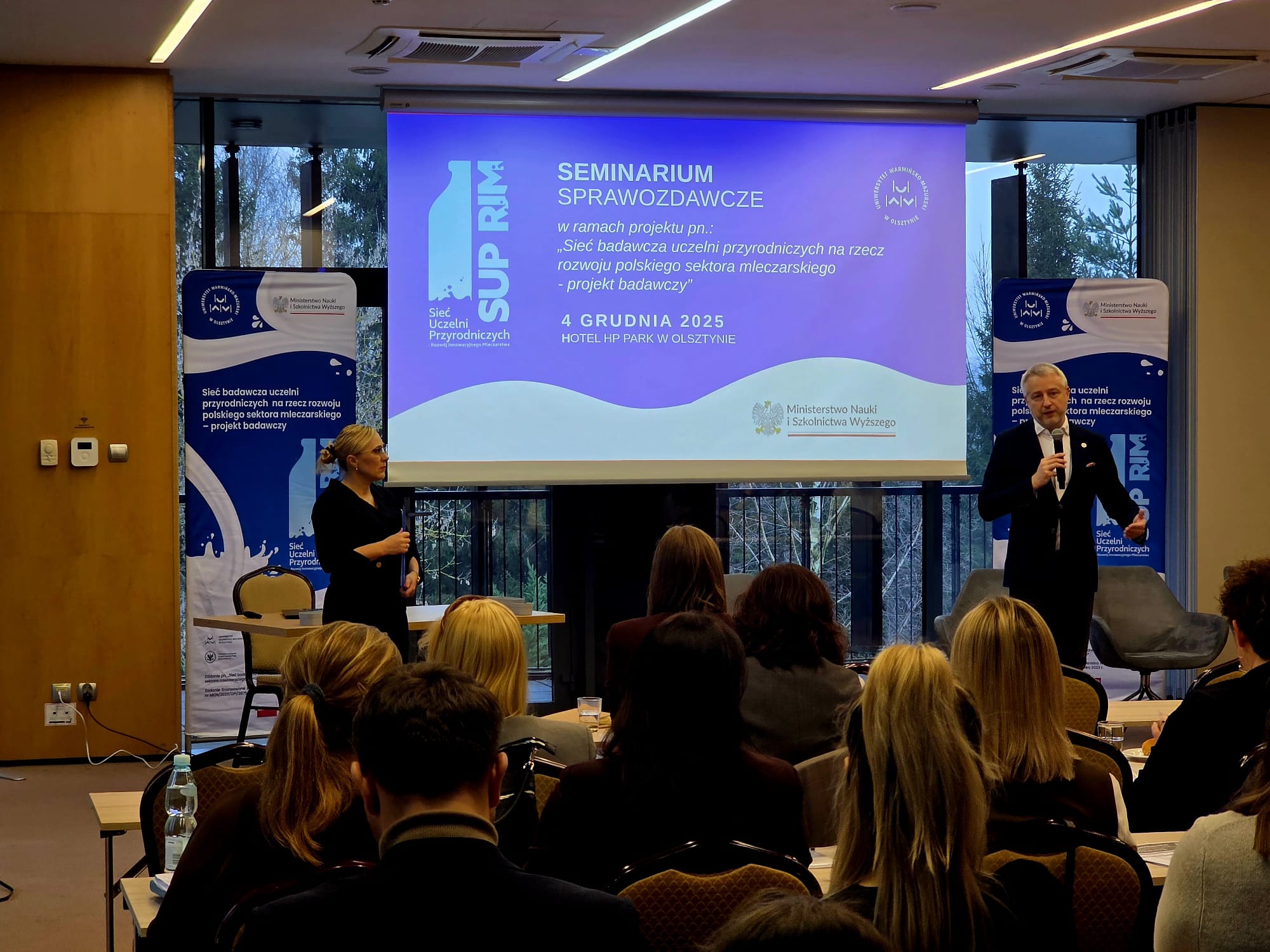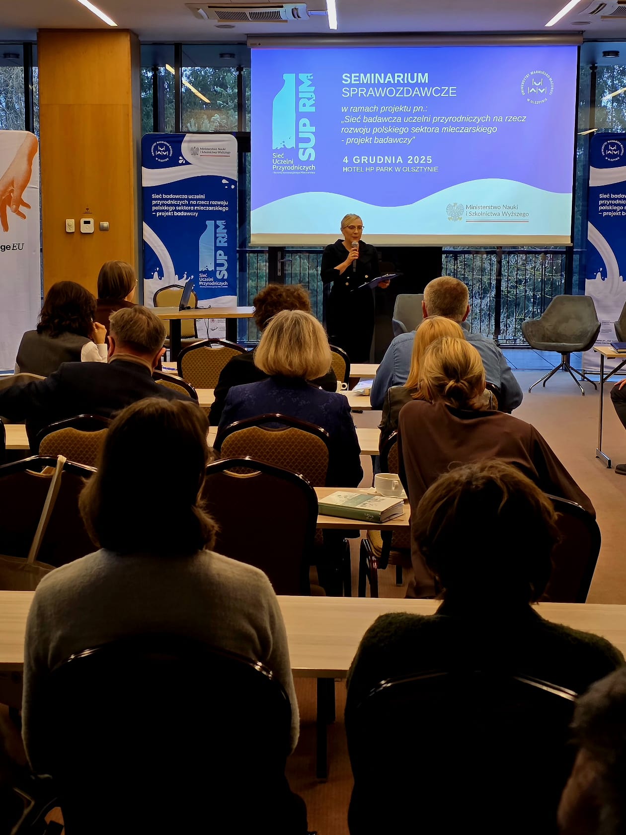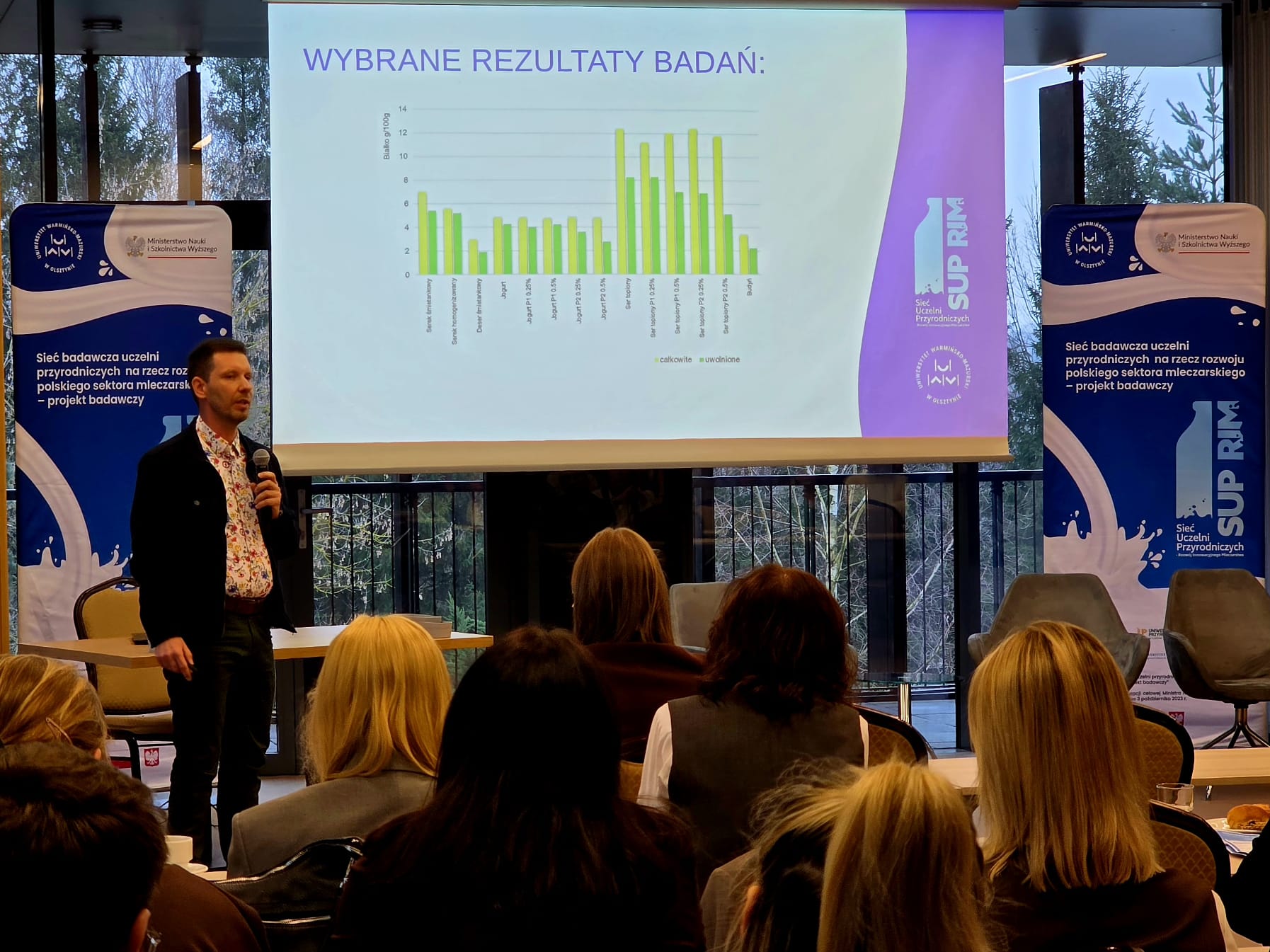 4 grudnia 2025 r. w Hotelu HP Park w Olsztynie odbyła się seria inspirujących prezentacji, w których zespoły badawcze z Uniwersytetu Warmińsko-Mazurskiego przedstawiły postępy i wyniki prac dotyczących innowacji technologicznych, jakości produktów mleczarskich, bezpieczeństwa żywności, zrównoważonej gospodarki wodno-ściekowej, nowych metod badawczych oraz trendów konsumenckich.