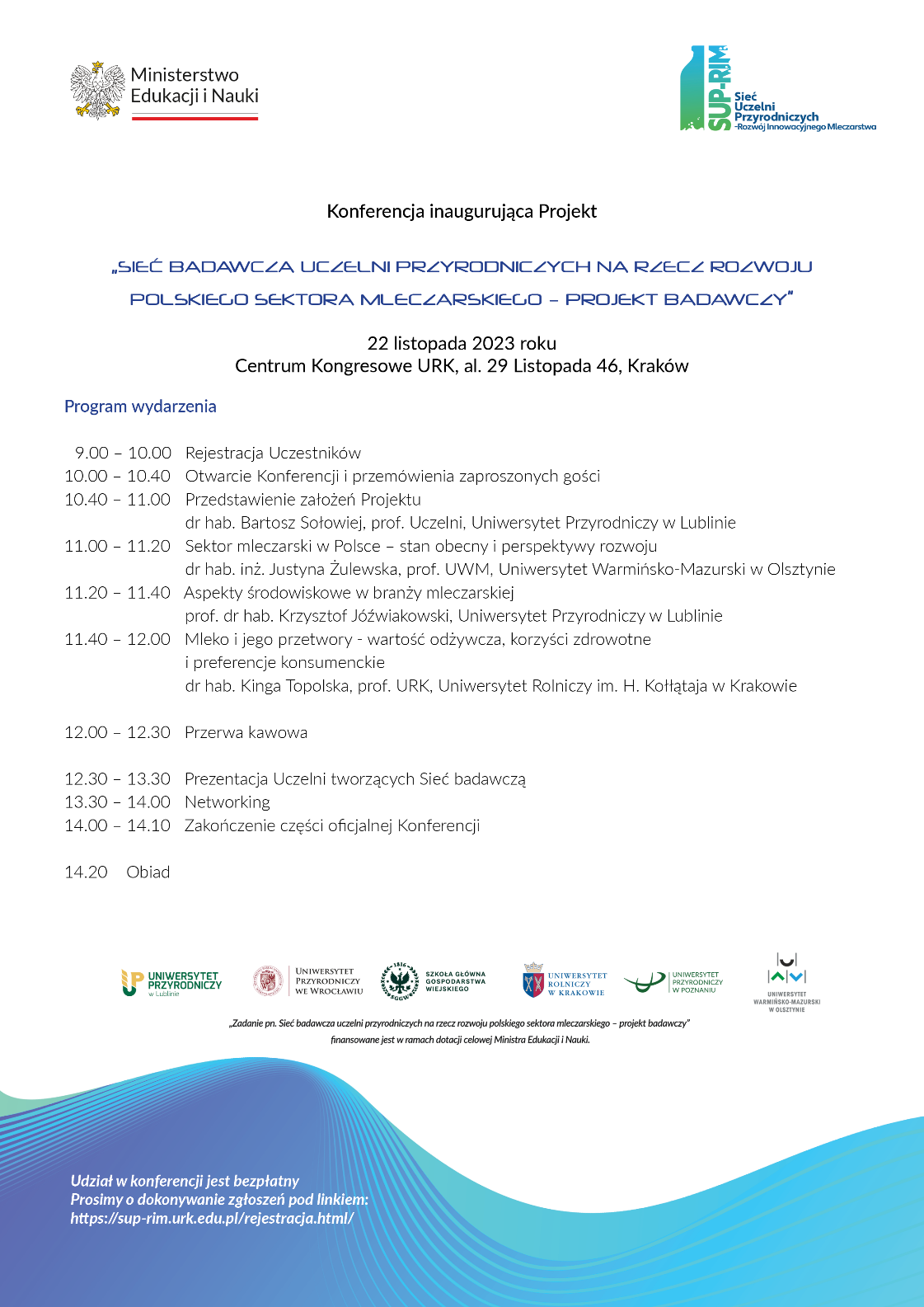 W Centrum Kongresowym Uniwersytetu Rolniczego im. H. Kołłątaja w Krakowie rozpoczęła się konferencja inaugurująca projekt „Sieć badawcza uczelni przyrodniczych na rzecz rozwoju polskiego sektora mleczarskiego – projekt badawczy".